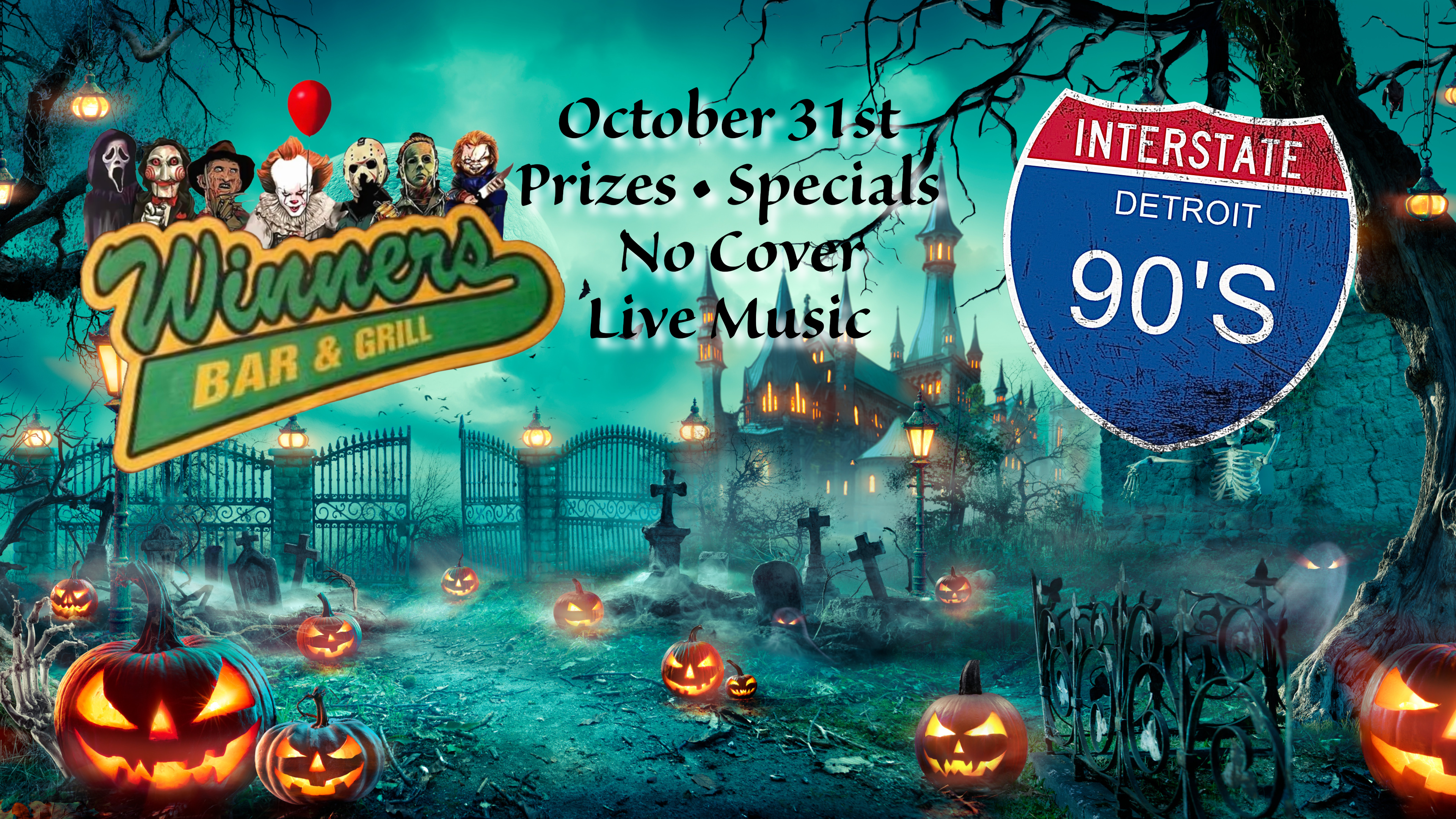 Plan your costumes – Winner’s is the place to be on Halloween night! Interstate 90’s – Detroit will be rolling out your favorite rock and alternative dance tunes from the 90s and beyond for the best Halloween party Friday, October 31st! No cover charge, live music 9 – 1.