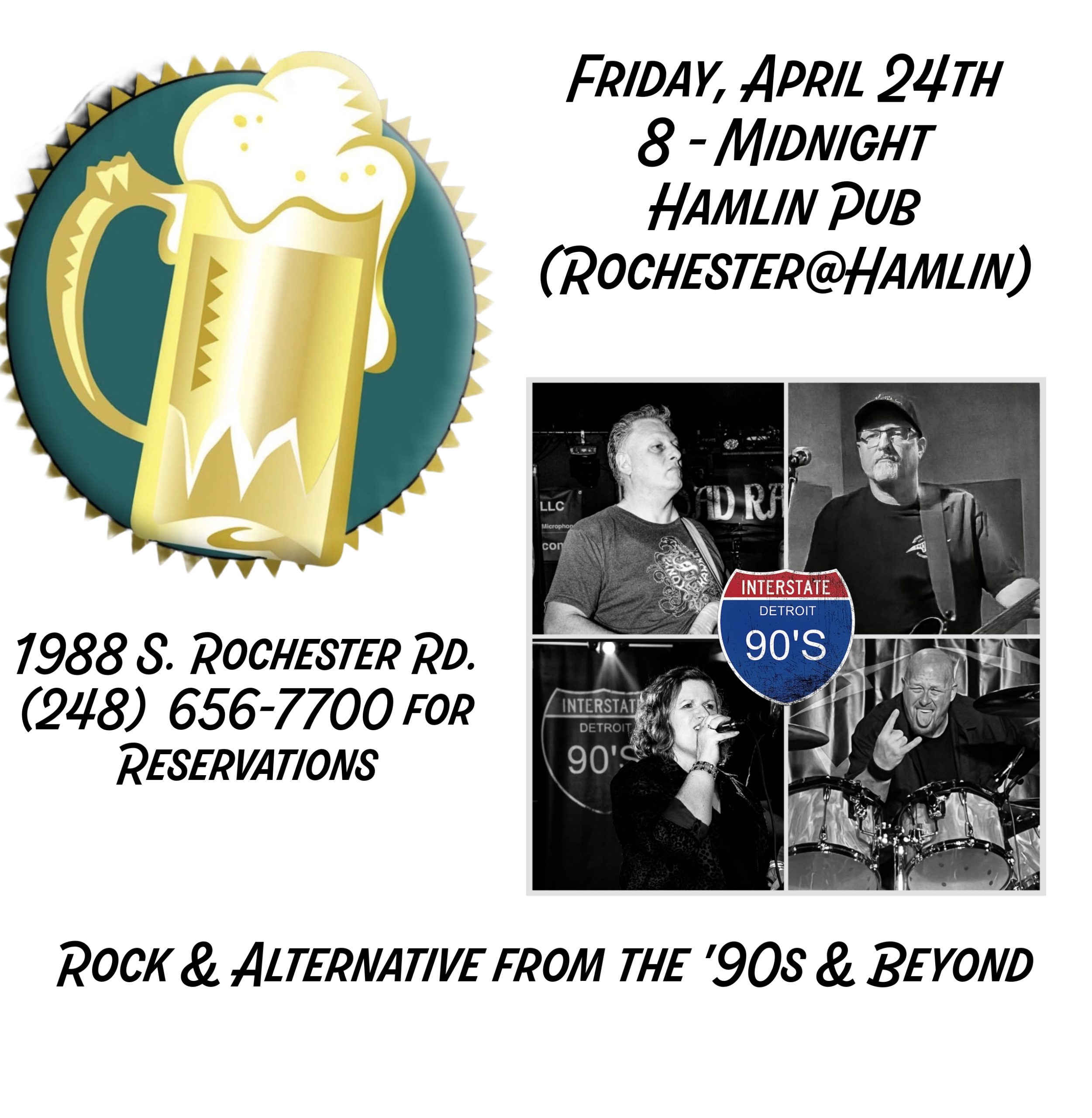 We’ve got one last stop at Hamlin Pub Rochester until the fall! Join us Friday, April 24th for a full night of your favorite ‘90s and beyond hits while the Hamlin crew keeps the great food and drinks flowing.